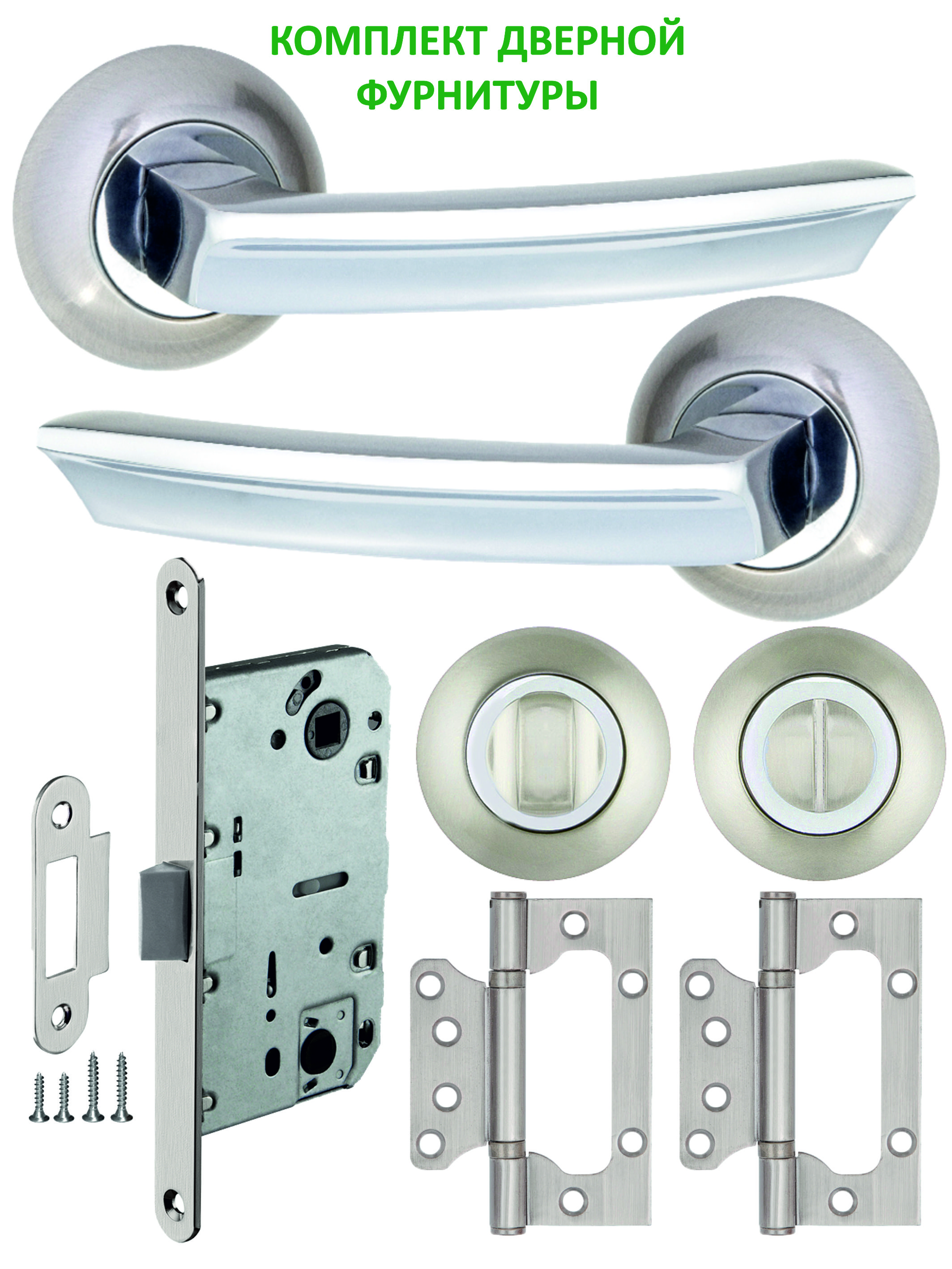Ручка дверная - пара, защелка сантехническая, ручка поворотная - компл., петли универсальные - пара