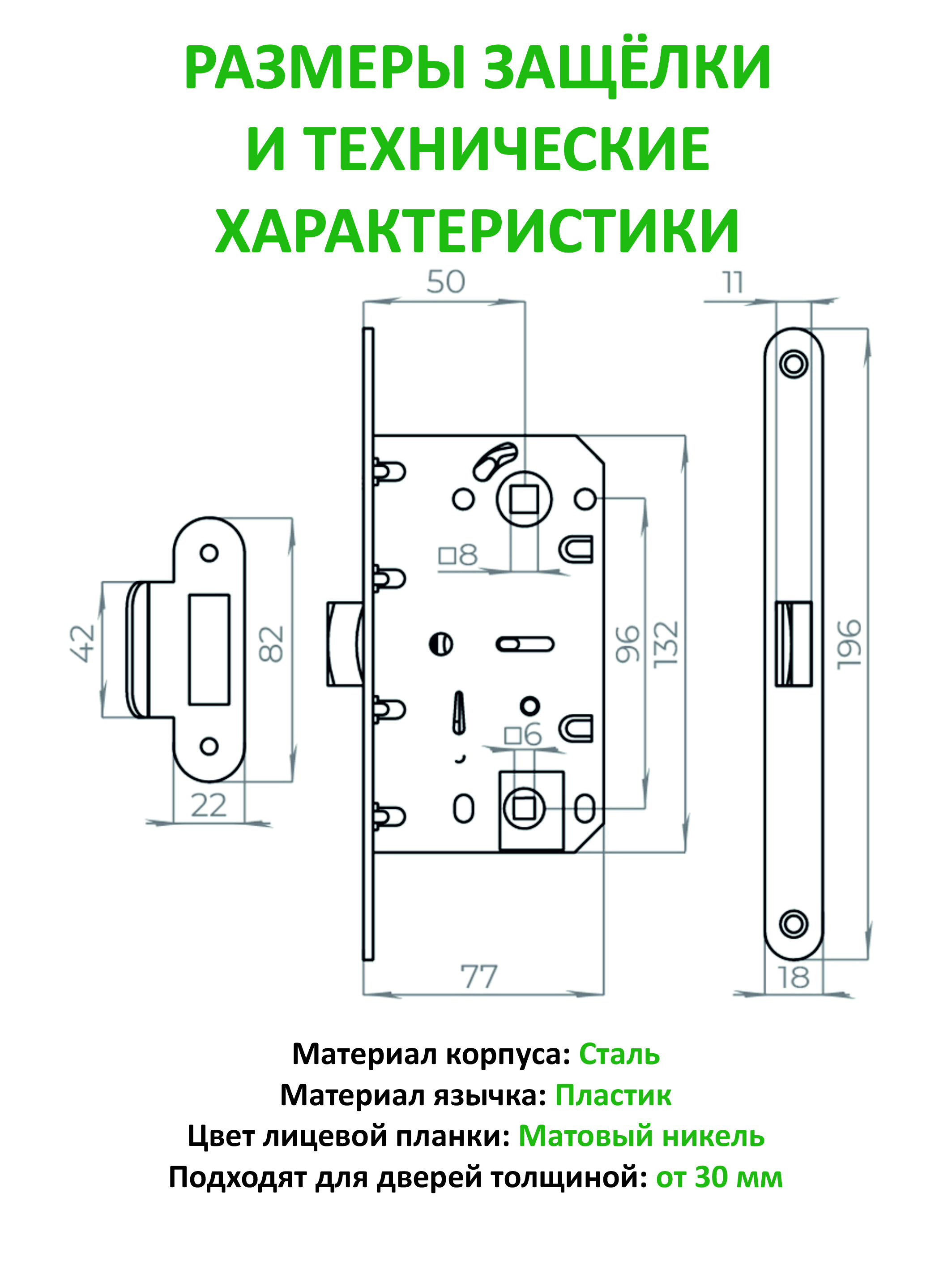 Благодаря ресурсу работы более 100000 циклов, вы можете быть уверены в долговечности этой фурнитуры. Она предназначена для дверей толщиной от 32 до 60 мм, что делает её универсальной для использования в любых межкомнатных дверях вашего дома.