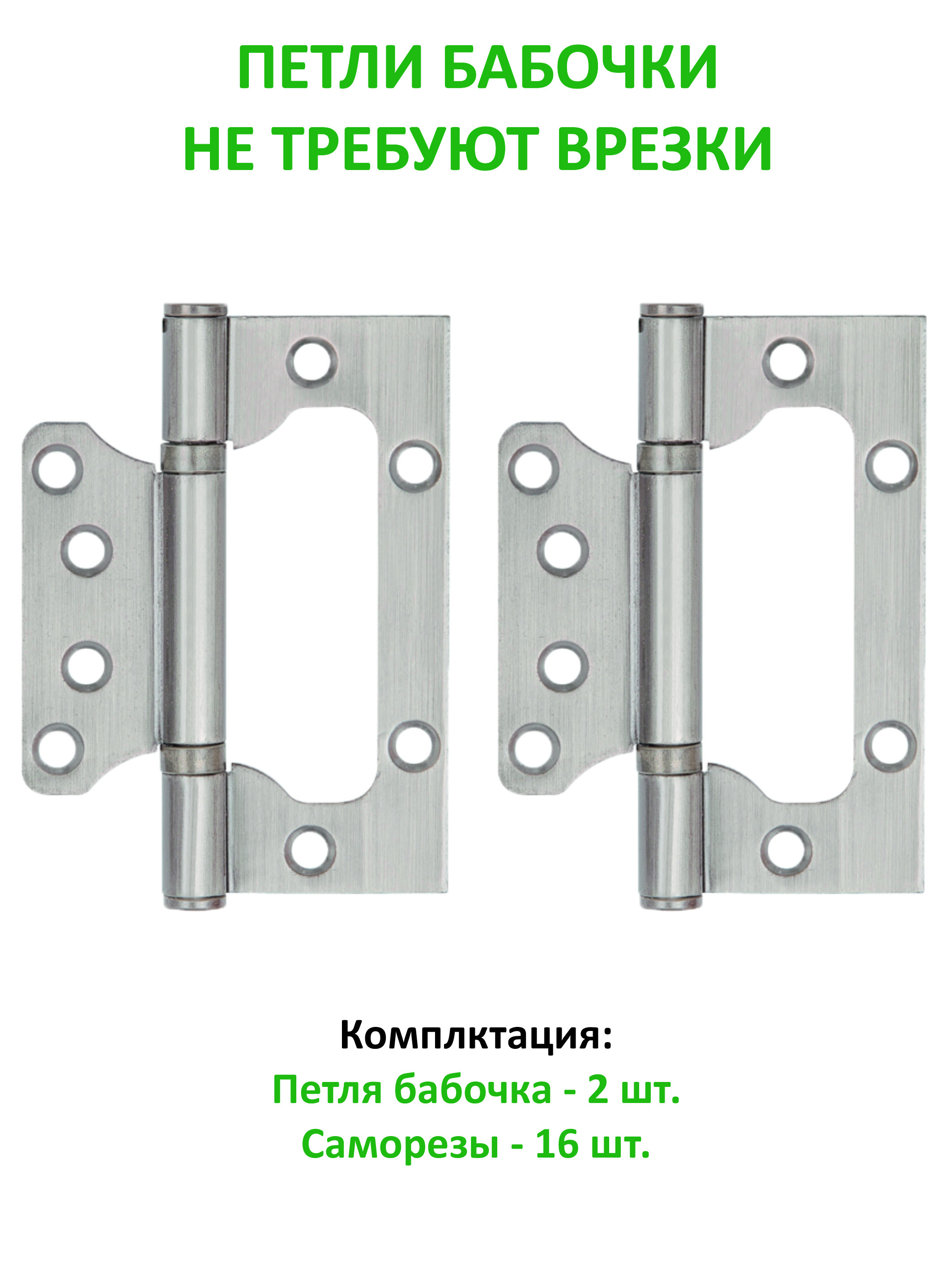 Петли бабочки без врезки упрощают процесс установки, что позволяет быстро и без лишних инструментов установить дверь. Такой готовый комплект станет отличным выбором для тех, кто ценит удобство и простоту монтажа.